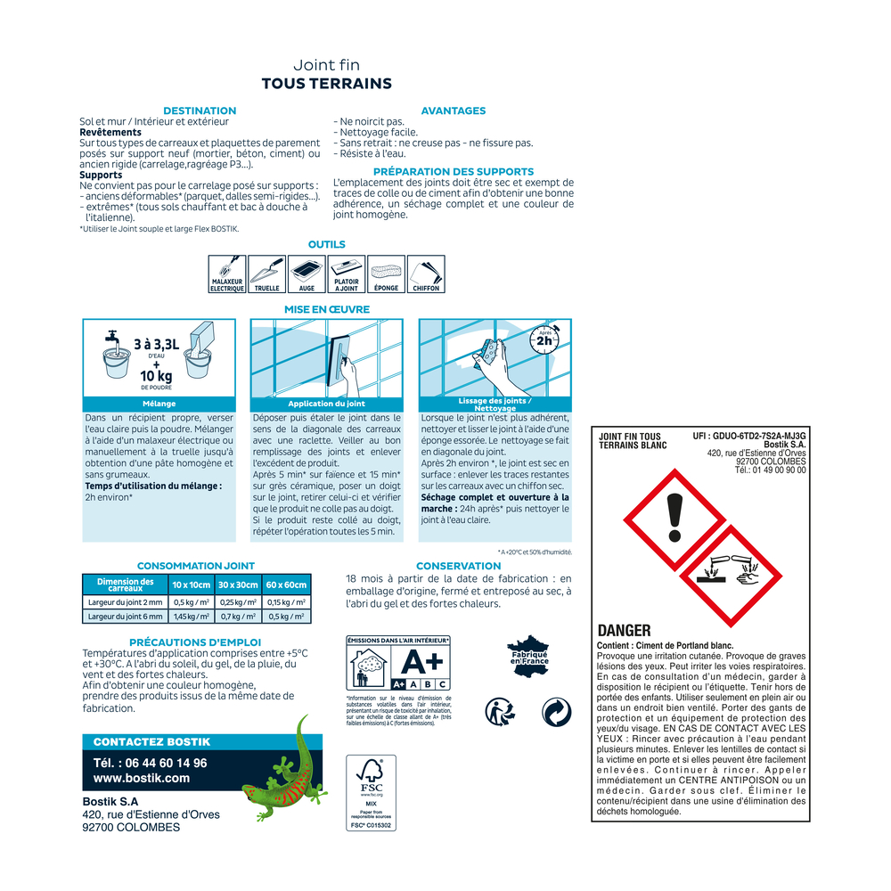 Découvrez Joint Fin Tous terrains Joint carrelage - Blanc 1,5kg - Lot de 2 - BOSTIK - 30121643 disponible à l'achat