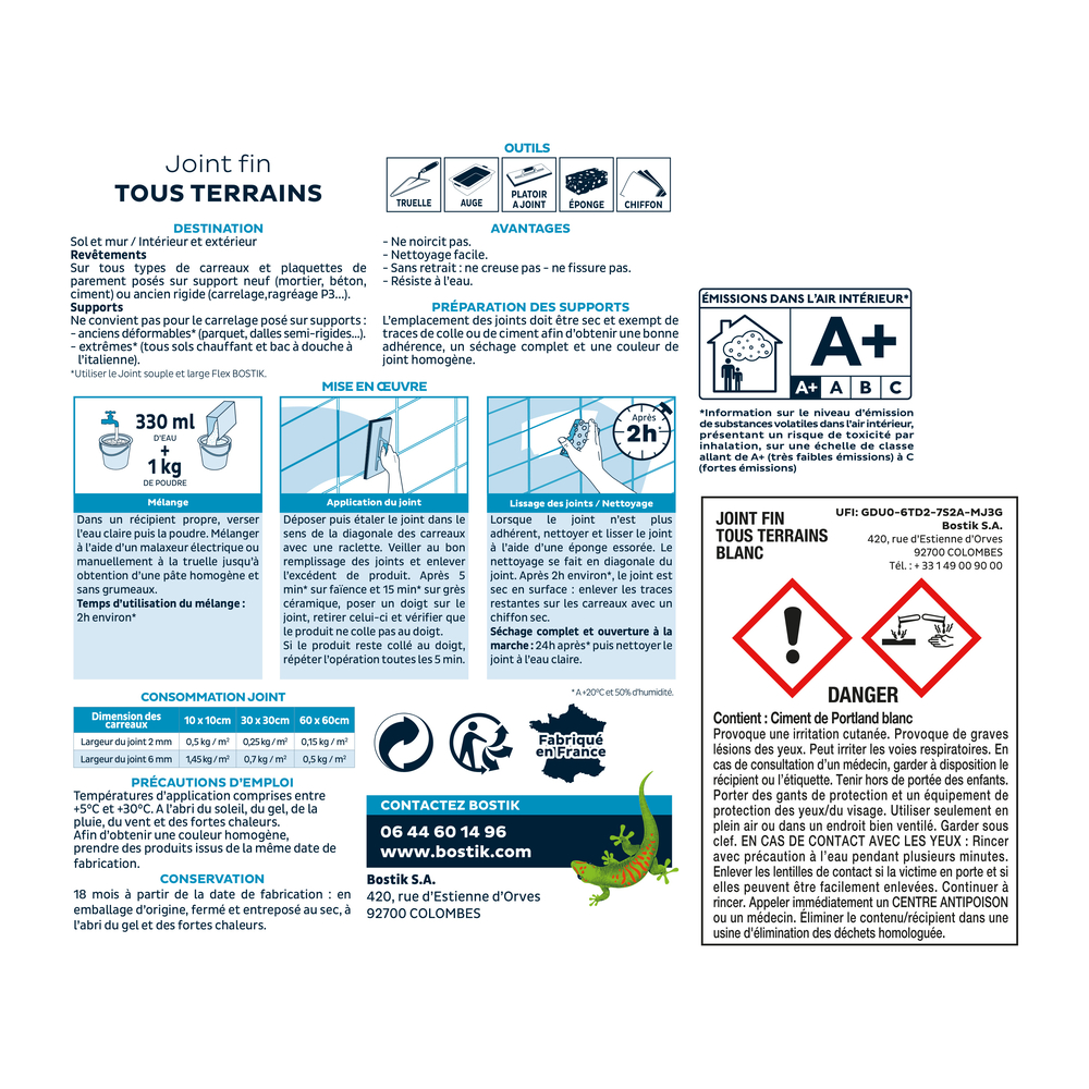 Découvrez le Joint Fin Tous terrains pour carrelage de BOSTIK, une solution idéale pour une finition esthétique et durable de vos surfaces carrelées.
