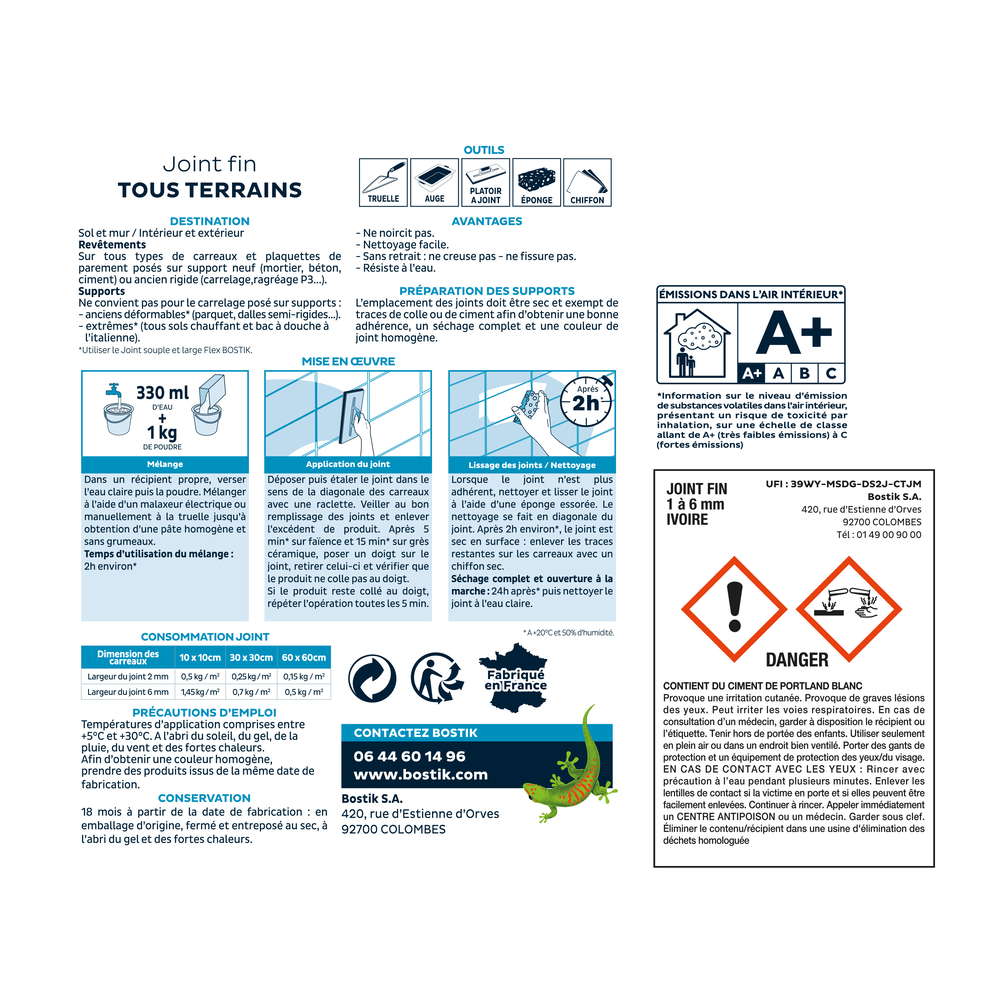 Découvrez le Joint Fin Tous Terrains pour carrelage de Bostik, un produit idéal pour vos projets de carrelage.