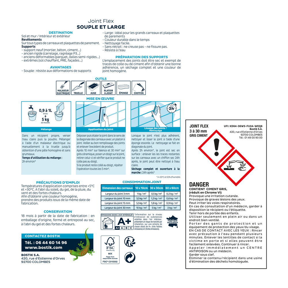 Découvrez le Joint Flex Souple et Large Gris Ciment de BOSTIK, un produit spécialement conçu pour les grands carreaux.