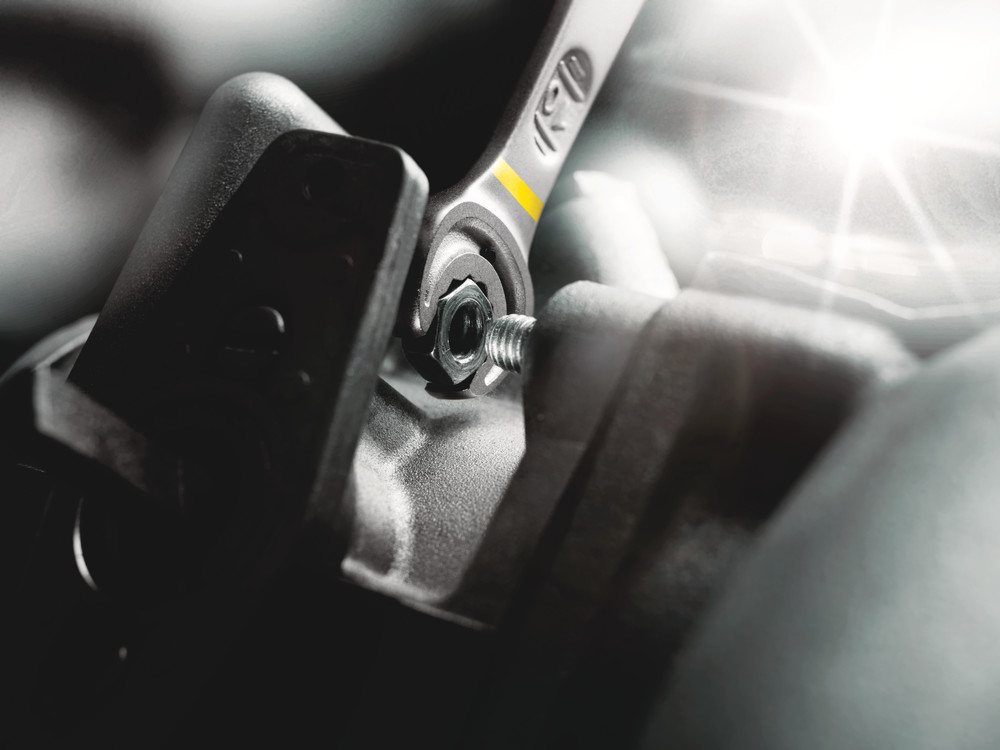 Lorsque nous avons commencé à plancher sur les clés mixtes, nous nous sommes demandé pourquoi il fallait toujours inverser la clé, pourquoi même était-elle contrecoudée, pourquoi perdait-on constamment des vis, pourquoi dérapait-on en se blessant aux doigts de surcroît ? En repensant la fourche, nous avons créé un véritable Joker qui fonctionne même encore si l'on n'a plus aucun autre atout