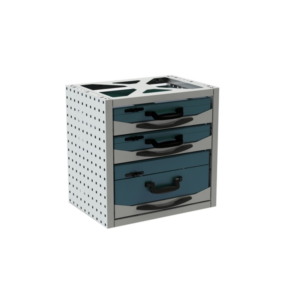 Structure agencée avec coffrets MODULO VSYS et avec chariots et/ou tiroirs