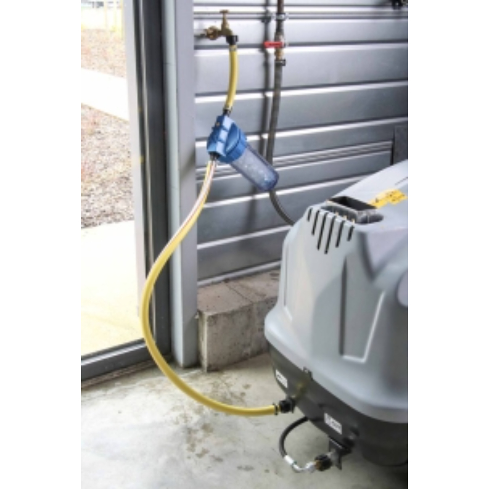 Le kit anti-calcaire préventif pour nettoyeur HP eau chaude, idéal pour préserver votre équipement. Ce kit comprend une cartouche contenant des cristaux de polyphosphate, un filtre BU de 150 microns, un flexible de raccordement de 500 mm et un support mural.