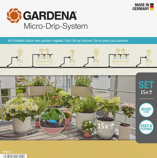 Kit d'initiation pour balcon avec goutteur réglable (15 plantes) - GARDENA - 13402-26
