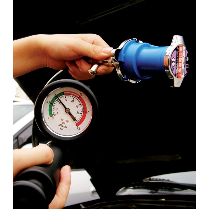 Ce kit comprend un système pratique pour le remplissage du circuit de refroidissement, permettant une détection rapide des fuites, qu'il s'agisse de joints de culasse, de radiateurs, de pompes à eau ou de tuyaux. Il est parfaitement adapté aux véhicules courants équipés de moteurs à liquide de refroidissement. Grâce au manomètre inclus, vous pouvez vérifier la pression de 0 à 2,5 bar avec précision.