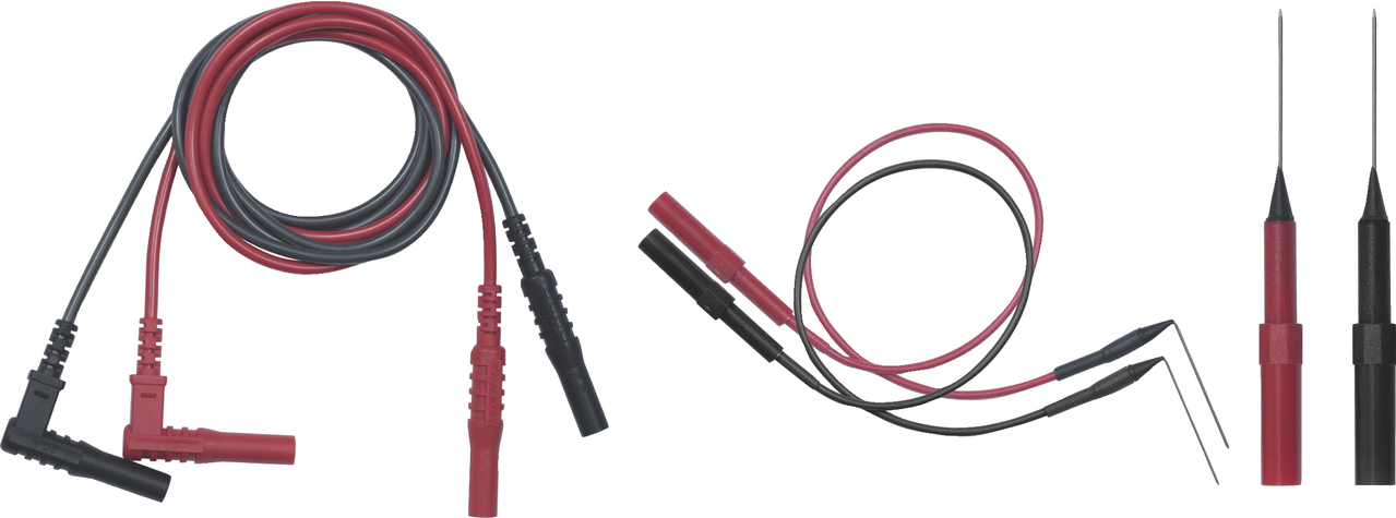 Ce kit fonctionne grâce à des câbles de mesure en silicone, dotés d'une double isolation et d'une longueur de 1 200 mm, qui permettent des mesures fiables et sécurisées. Les pointes de contrôle en forme d'aiguille, en acier à ressort, facilitent l'accès aux points de mesure dans des espaces étroits. Les aiguilles coudées sont idéales pour des mesures précises, même dans des configurations difficiles.