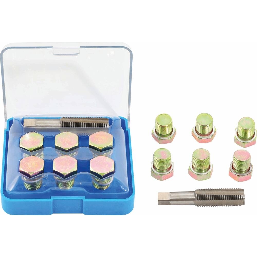 Ce kit offre une solution efficace pour réparer les filetages endommagés, garantissant une étanchéité optimale après intervention. Il comprend un taraud et six bouchons de vidange, permettant ainsi une application complète pour satisfaire vos besoins en réparation. La présentation en coffret PVC assure une protection et un rangement facile de l'ensemble des éléments.