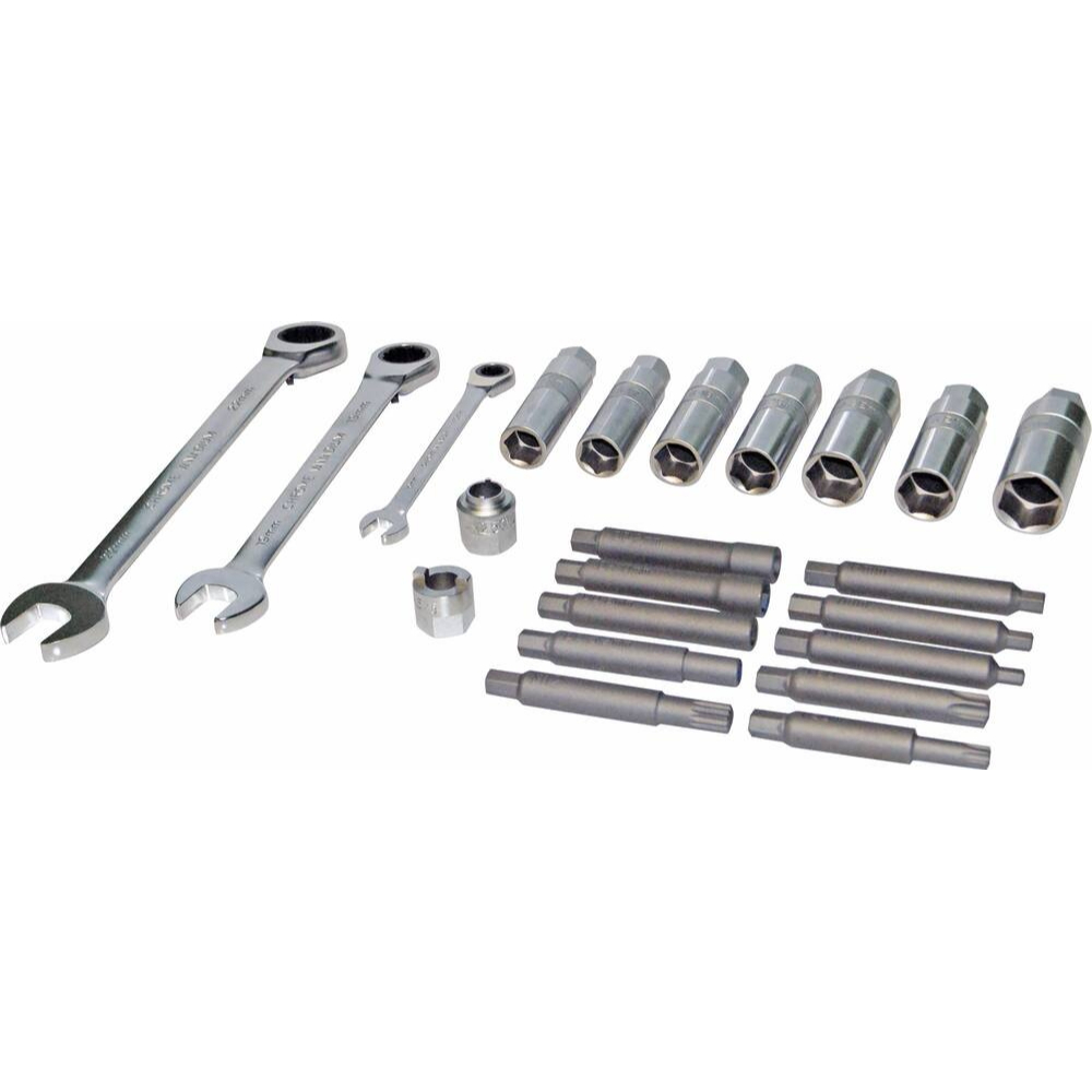 - 3 clés à cliquet avec hexagone pour les douilles spéciales,