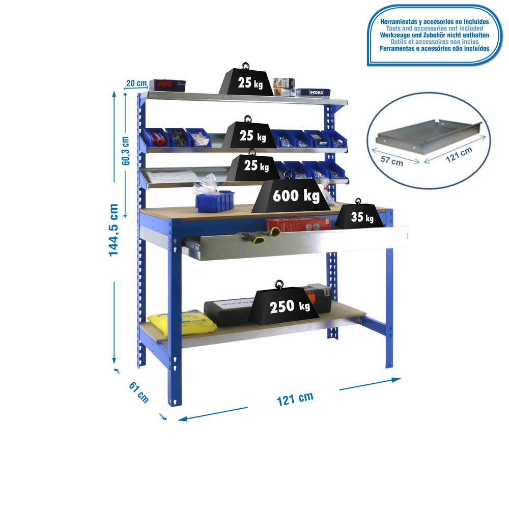 Kit établi Bricolage - 1445x1210x610 - 5 niveaux Bleu/Bois - SIMON RACK - 8435104932414