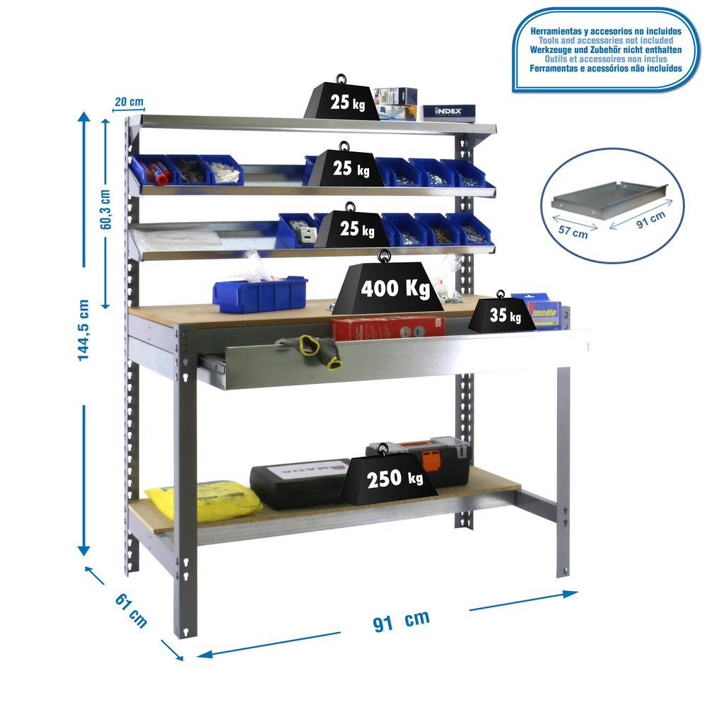 Kit établi Bricolage - 1445x910x610 - 5 niveaux Gris/Bois - SIMON RACK - 8435104932360