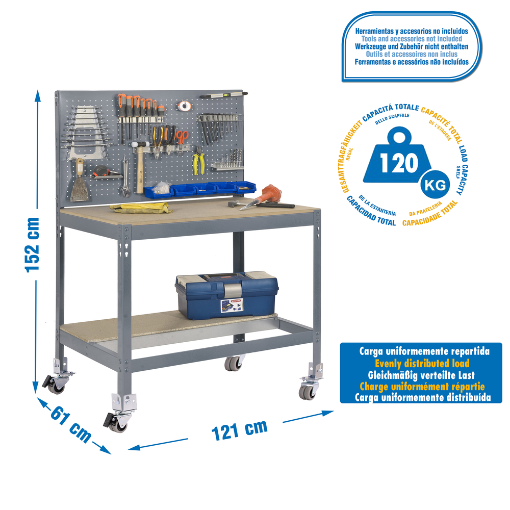 Kit établi mobile Bricolage - 1520x1210x610 - 2 niveaux Gris/Bois - SIMON RACK - 8435104984796