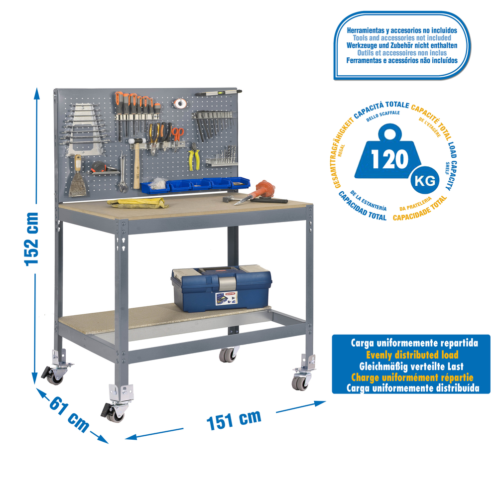 Kit établi mobile Bricolage - 1520x1510x610 - 2 niveaux Gris/Bois - SIMON RACK - 8435104984826