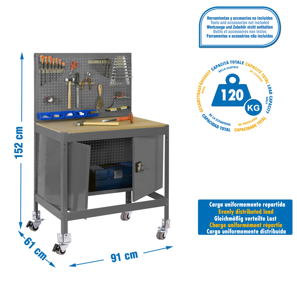 Kit établi mobile Bricolage - 1520x910x610 - 1 niveau Gris/Bois - SIMON RACK - 8435104984949