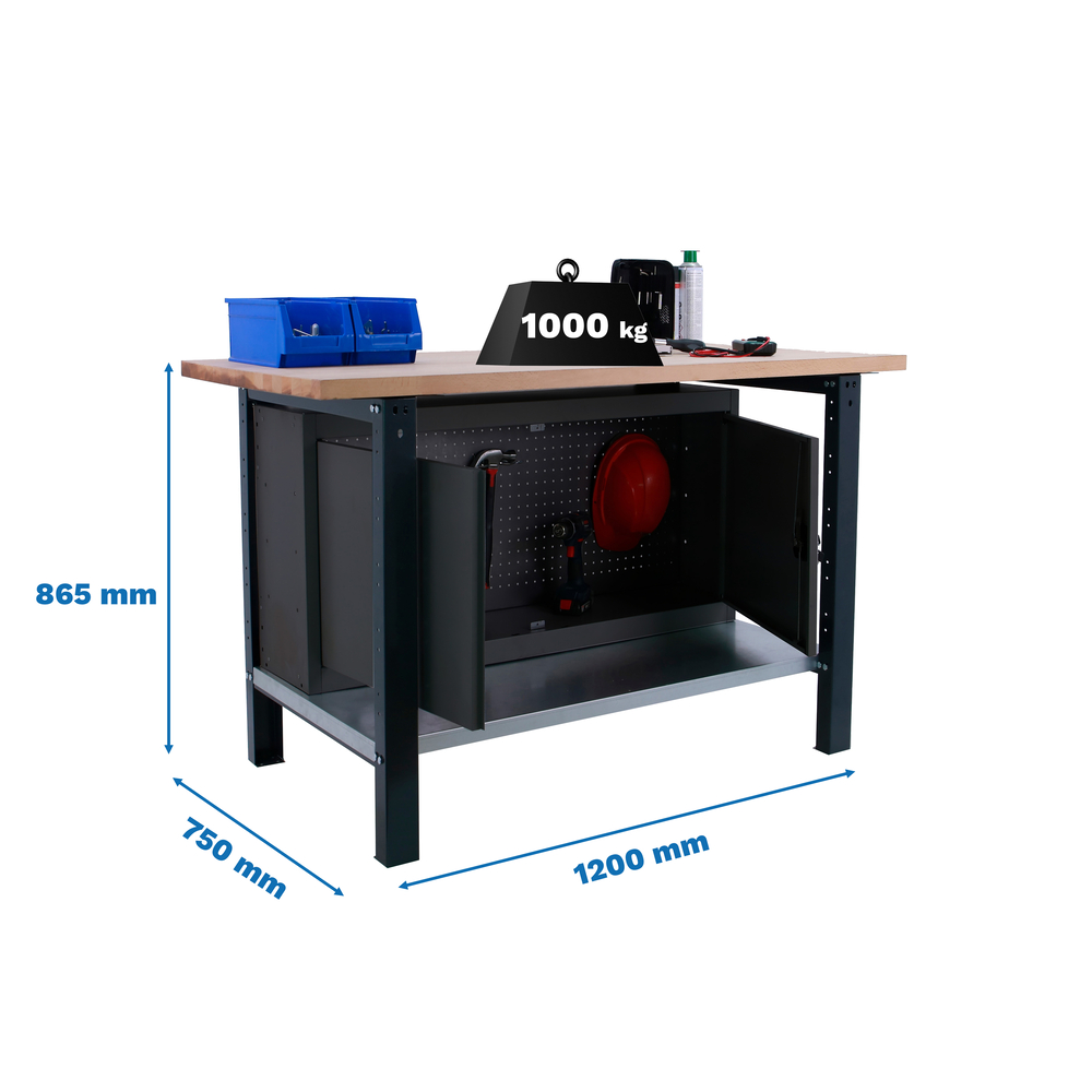 Cet établi de dimensions 865x1200x750 mm offre un niveau de travail robuste, capable de supporter jusqu'à 1000 kg. Sa conception en anthracite s'intègre facilement dans tout espace de bricolage. Le montage se fait aisément à l'aide de vis, garantissant une stabilité optimale. Avec un seul niveau, cet établi est parfait pour les utilisateurs qui recherchent un espace de travail efficace sans encombrement.