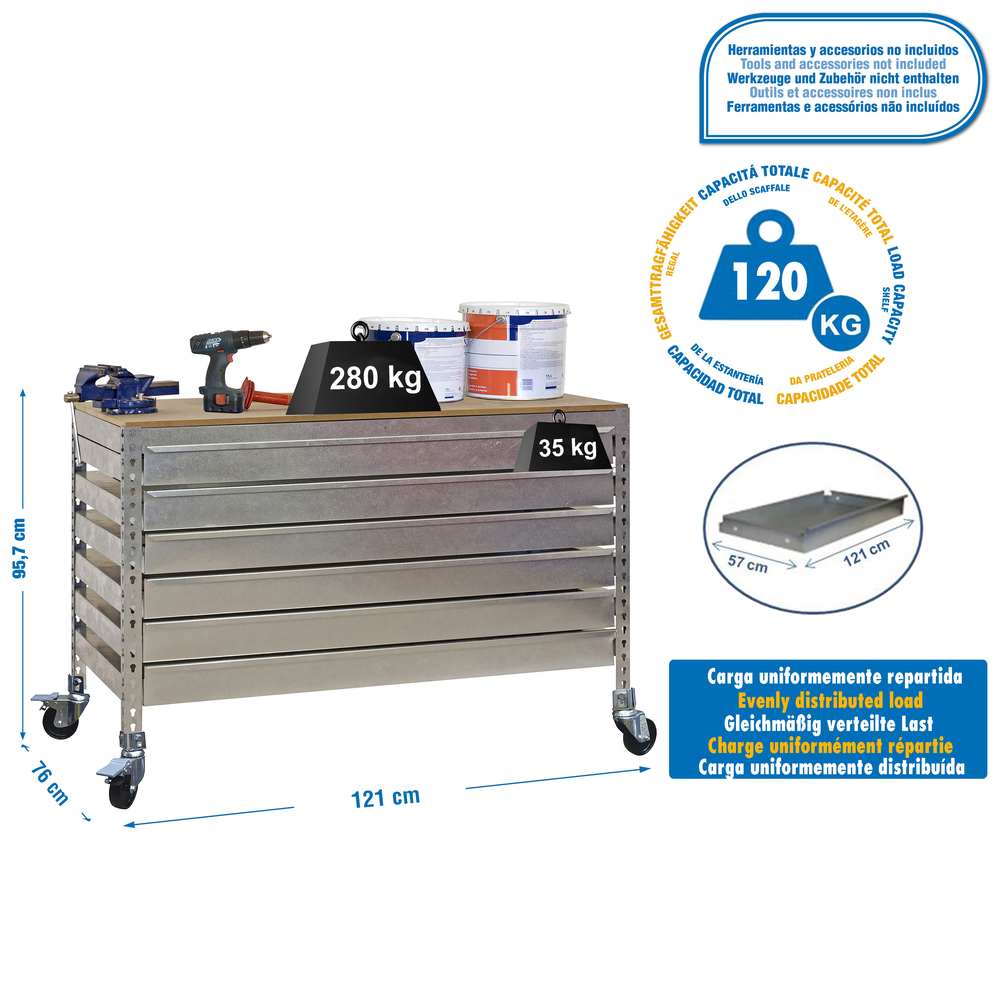 Kit établi mobile Bricolage - 917x1210x760 - 1 niveau Bois - SIMON RACK - 8435104985380