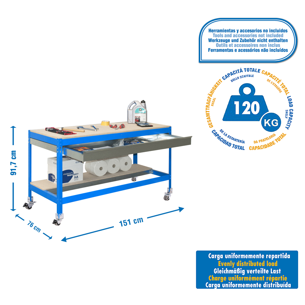 Kit établi mobile Bricolage - 917x1510x760 - 2 niveaux Bleu/Bois - SIMON RACK - 8435104984536