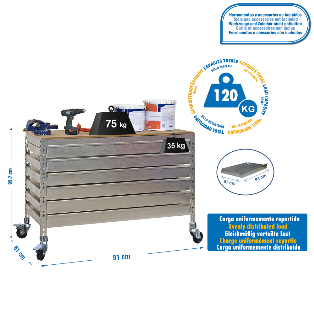 Kit établi mobile Bricolage - 917x910x610 - 1 niveau Bois - SIMON RACK - 8435104985359
