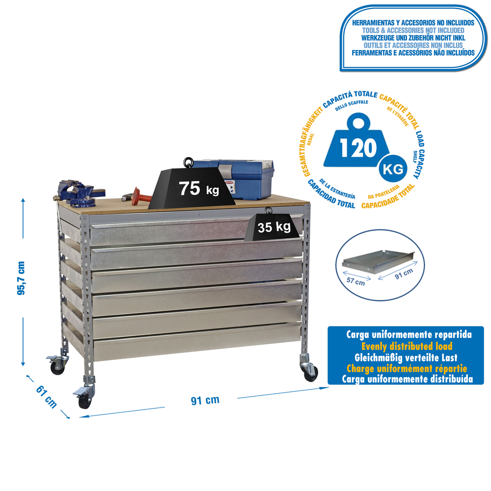 Kit établi mobile Bricolage - 917x910x610 - 1 niveau Gris/Bois - SIMON RACK - 8435104985342