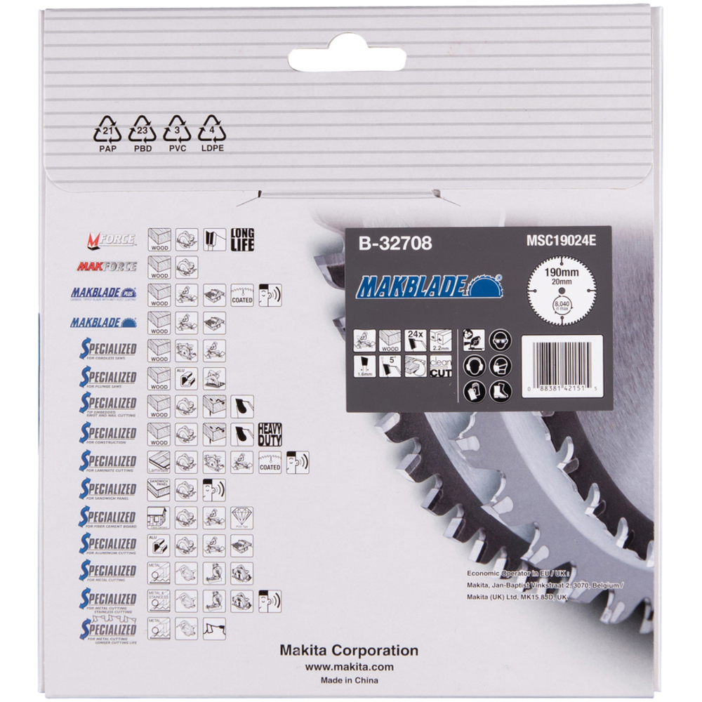 Cette lame de scie circulaire Makblade T.C.T de dimensions 190 x 20 mm et dotée de 24 dents est conçue pour réaliser des découpes nettes et professionnelles dans tous vos projets en bois. Pour une utilisation optimale, veillez à la fixer solidement sur votre scie circulaire et à choisir une vitesse de rotation adaptée, selon le matériau à couper.