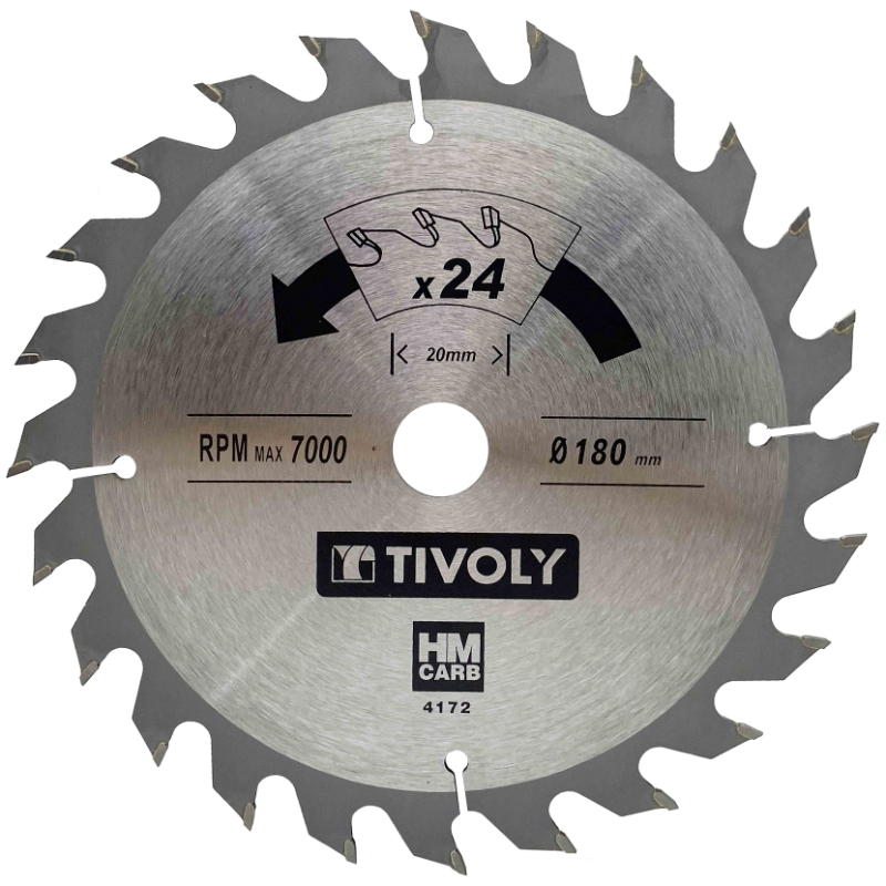 Découvrez Lame de scie circulaire -Débit - Pour Bois et plâtre -Pour scie portative Ø: 180 x Ø2: 20 x Z: 24 TIVOLY - XT50514004172 disponible à l'achat