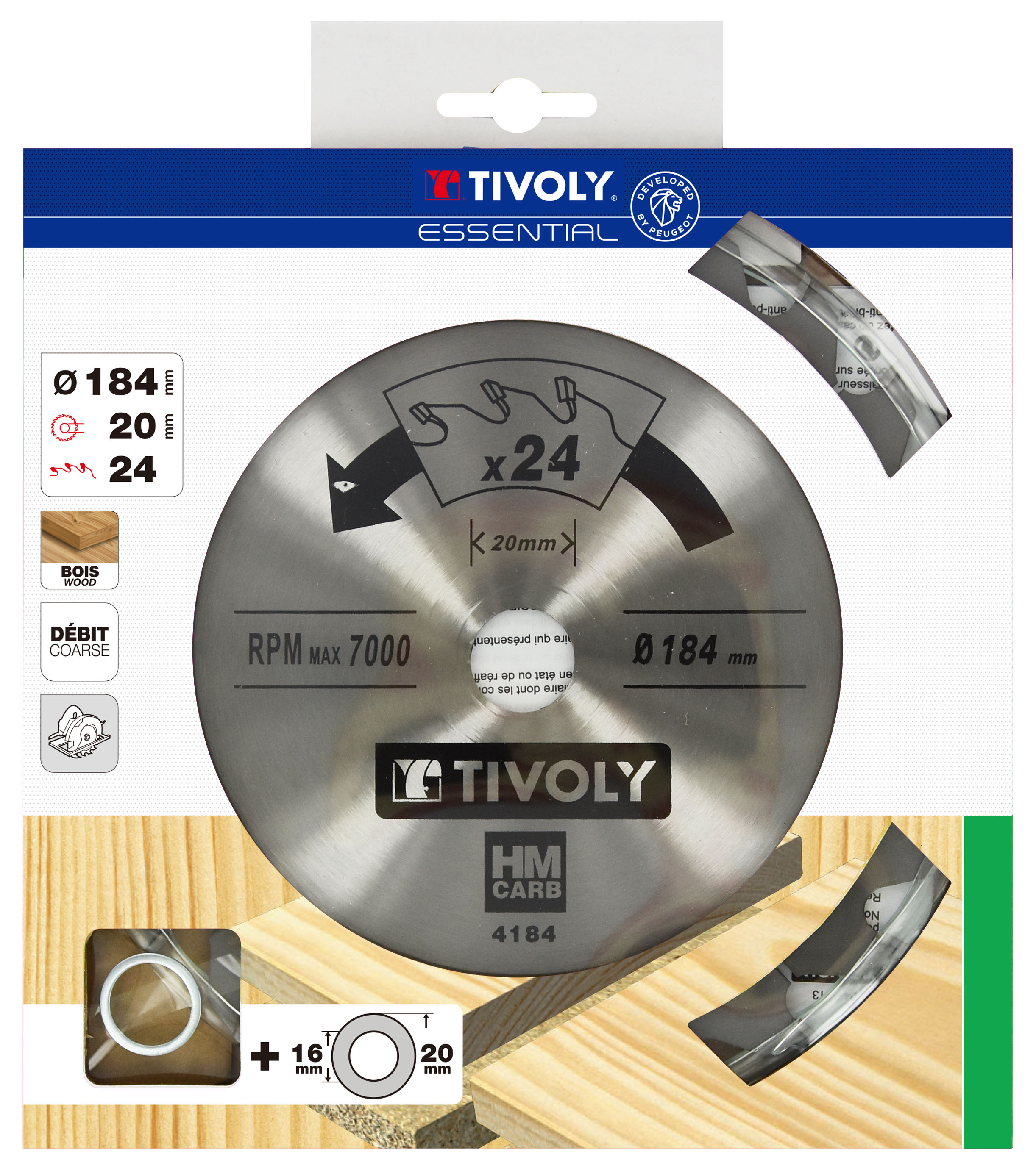 Découvrez Lame de scie circulaire -Débit - Pour Bois et plâtre -Pour scie portative Ø: 184 x Ø2: 20 x Z: 24 TIVOLY - XT50514004184 disponible à l'achat