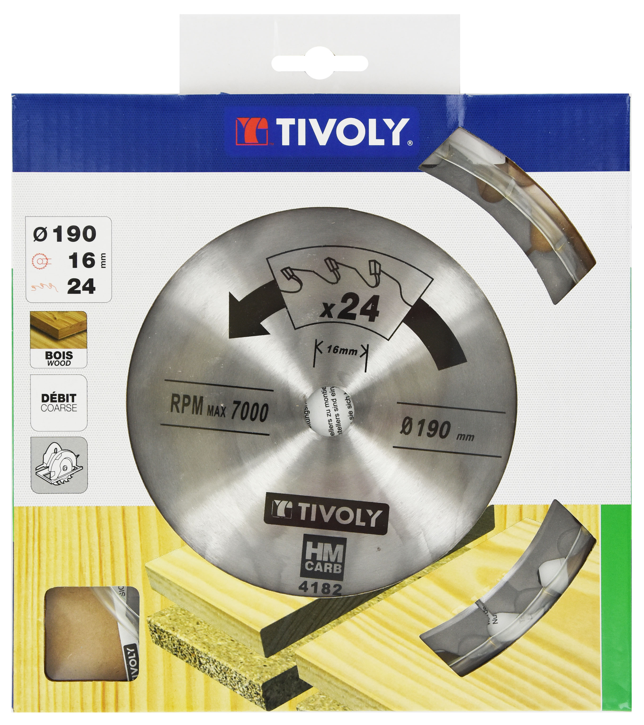 Découvrez Lame de scie circulaire -Débit - Pour Bois et plâtre -Pour scie portative Ø: 190 x Ø2: 16 x Z: 24 TIVOLY - XT50514004182 disponible à l'achat