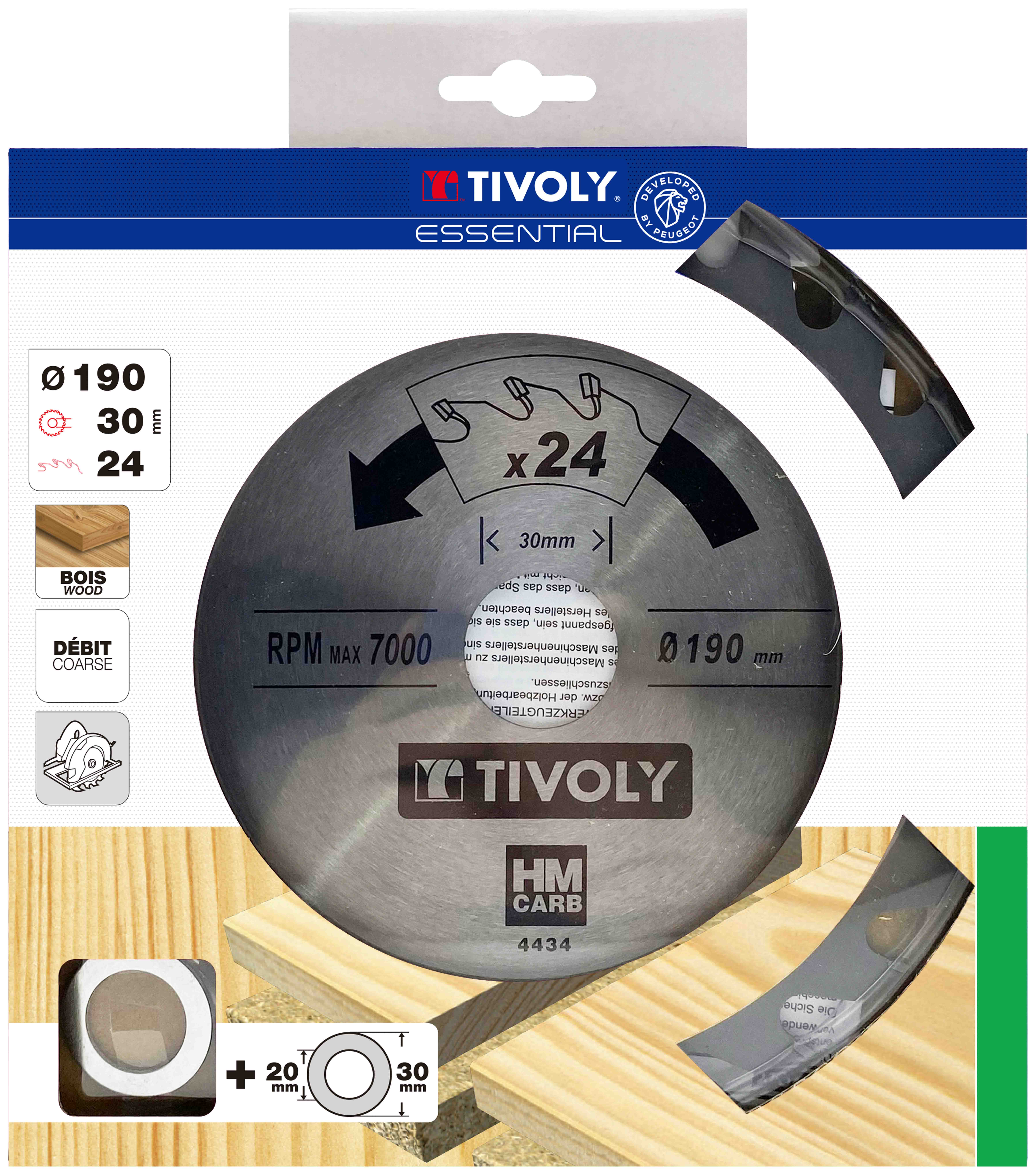 Découvrez Lame de scie circulaire -Débit - Pour Bois et plâtre -Pour scie portative Ø: 190 x Ø2: 30 x Z: 24 TIVOLY - XT50514004434 disponible à l'achat
