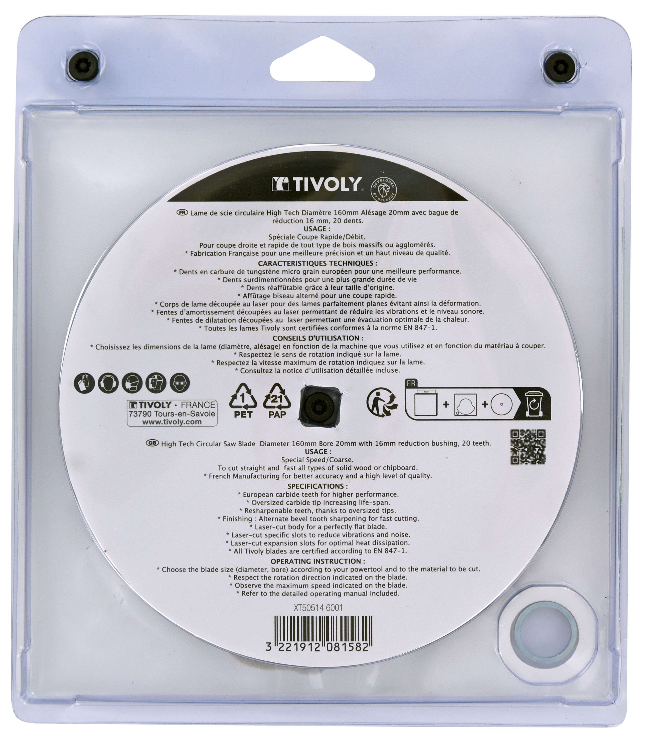 Découvrez Lame de scie circulaire -Débit - Pour Bois -Pour scie portative Ø: 160 x Ø2: 20 x Z: 20 TIVOLY - XT505146001 disponible à l'achat