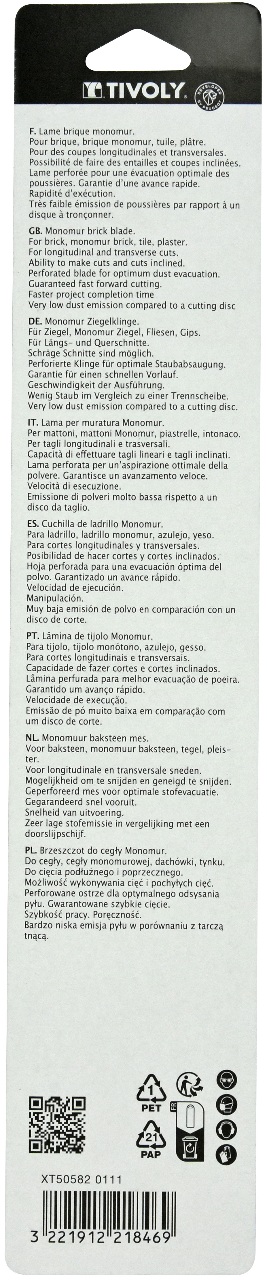 Découvrez Lame de scie sabre -Pour matériaux abrasifs -Attache universelle / L: 305 / H: / Droite TIVOLY - XT505820111 disponible à l'achat