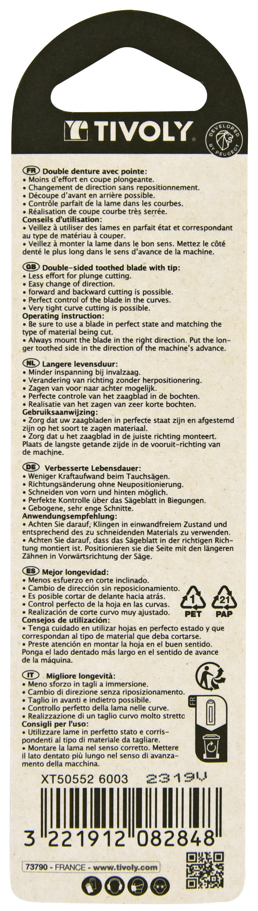 Découvrez Lame de scie sauteuse -Double denture -Pour bois mélaminé -Attache T / L: 115 / H: 95 / Mixte TIVOLY - XT505526003 disponible à l'achat