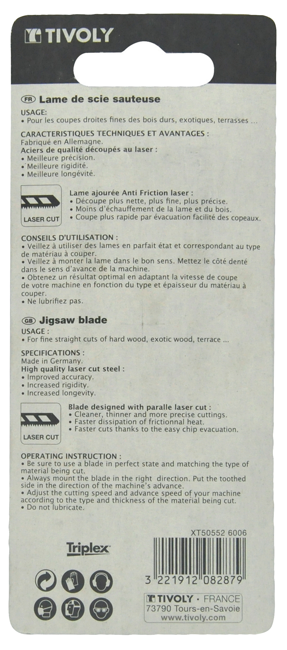 Découvrez Lame de scie sauteuse -Laser cut -Pour bois dur massif -Attache T / L: 100 / H: 75 / Droite TIVOLY - XT505526006 disponible à l'achat