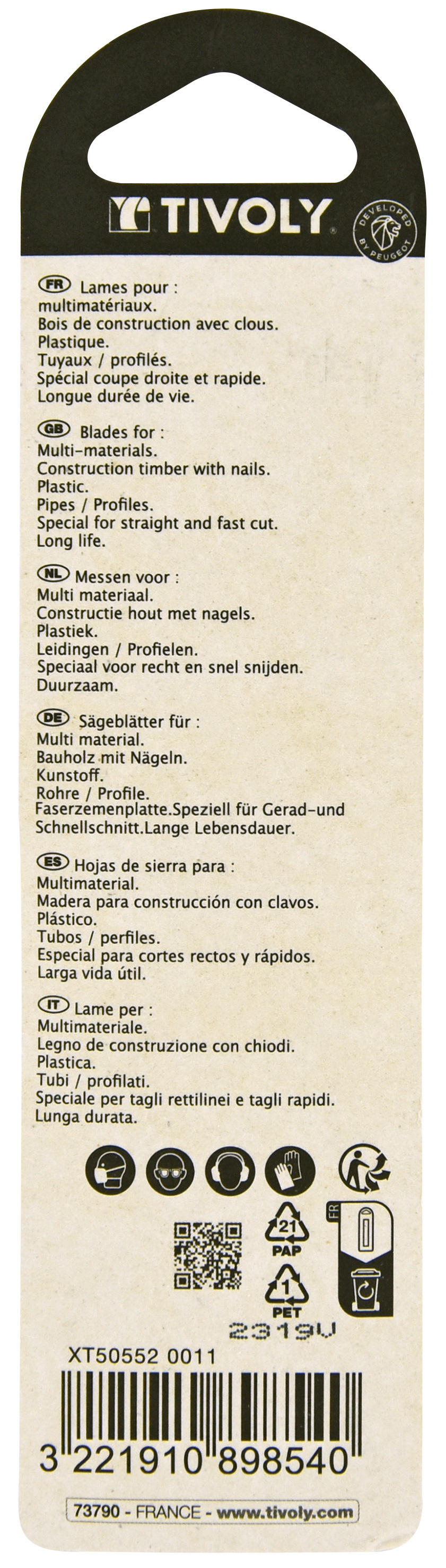 Lame de scie sauteuse -Multimatériaux -Attache T / L: 132 / H: 110 / Droite TIVOLY - XT505520011