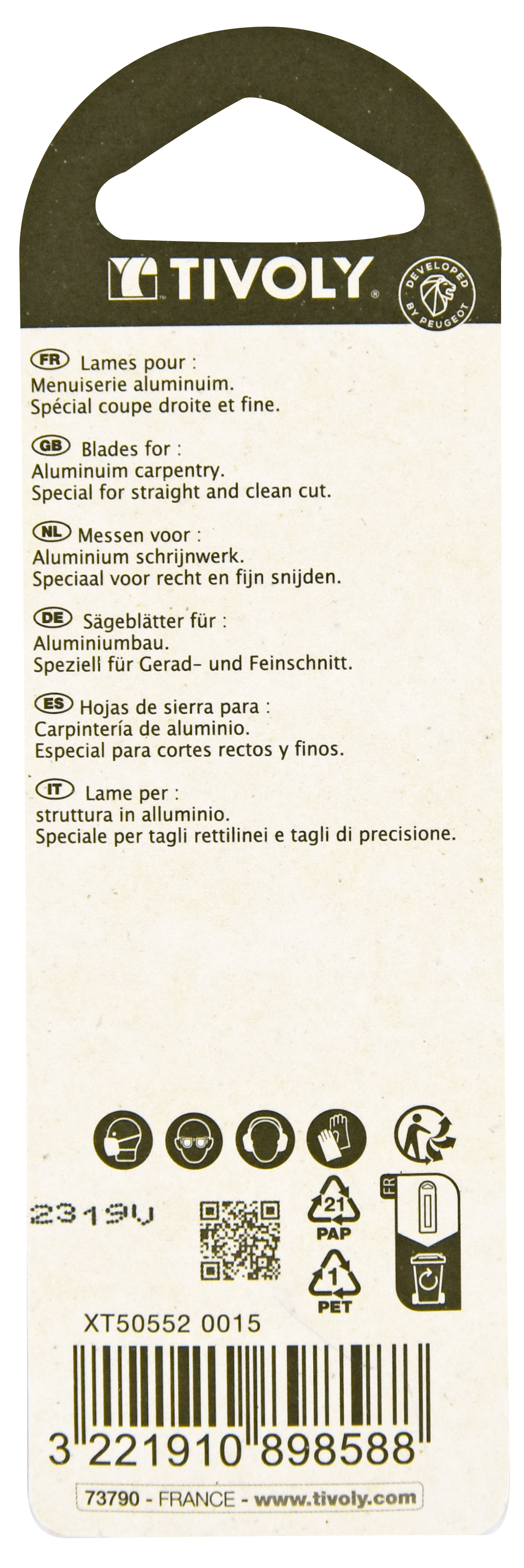 Découvrez Lame de scie sauteuse -Pour aluminium -Attache T / L: 100 / H: 75 / Droite TIVOLY - XT505520015 disponible à l'achat
