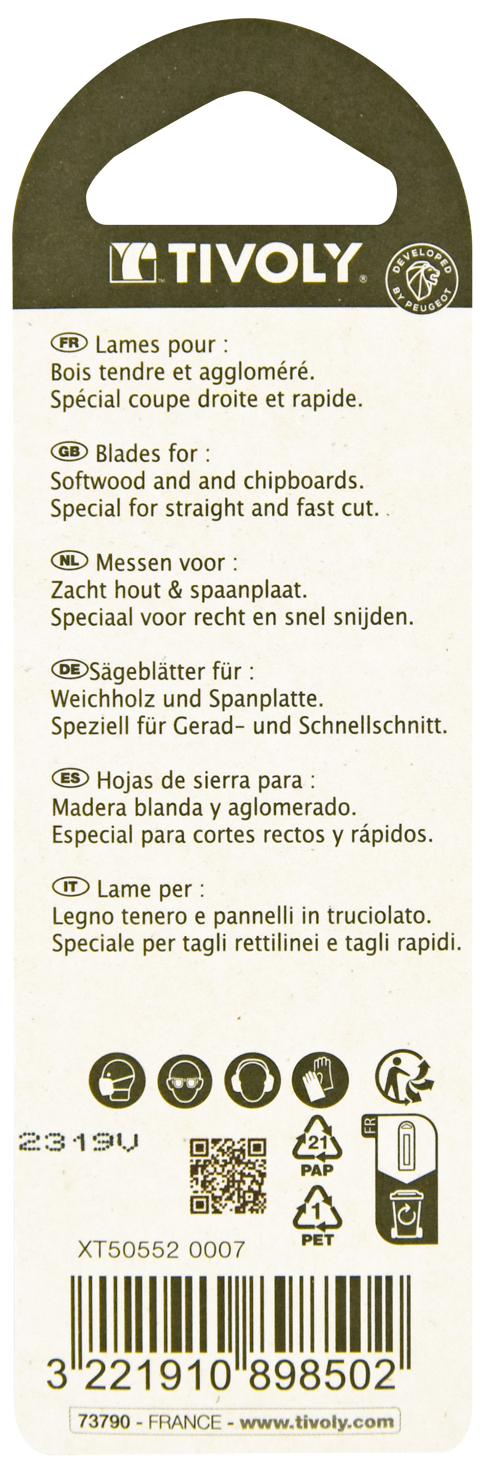 Lame de scie sauteuse -Pour bois tendre et aggloméré -Attache T / L: 100 / H: 75 / Droite TIVOLY - XT505520007