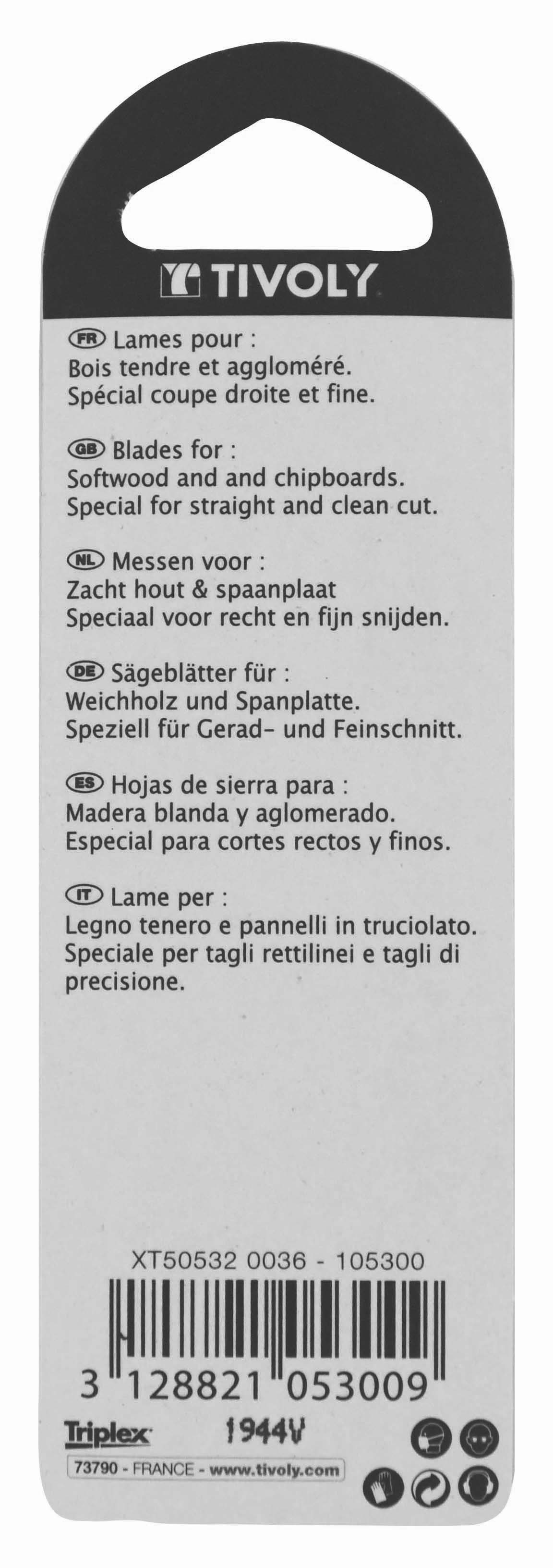 Lame de scie sauteuse -Pour bois tendre et aggloméré -Attache U / L: 100 / H: 75 / Droite TIVOLY - XT505320036