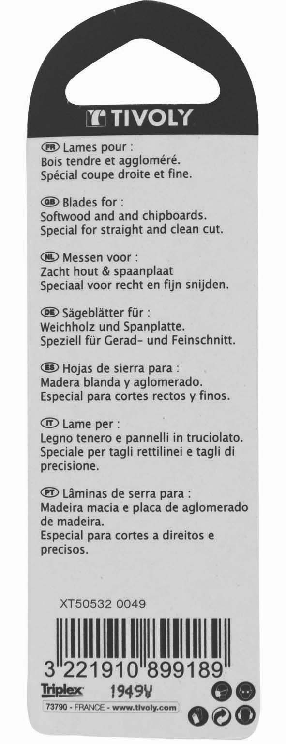 Lame de scie sauteuse -Pour bois tendre et aggloméré -Attache U / L: 100 / H: 75 / Droite TIVOLY - XT505320049
