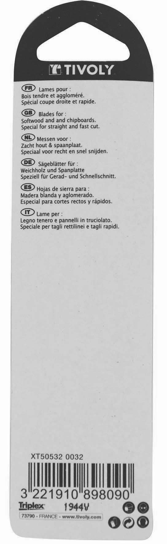 Lame de scie sauteuse -Pour bois tendre et aggloméré -Attache U / L: 132 / H: 110 / Droite TIVOLY - XT505320032