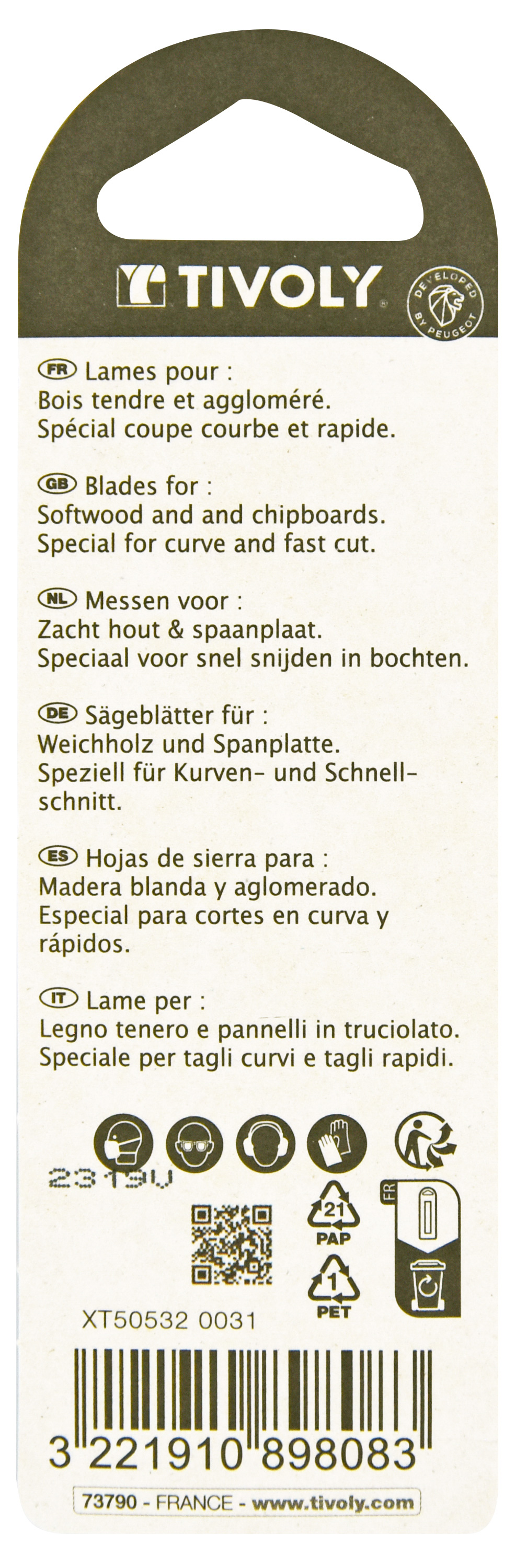 Lame de scie sauteuse -Pour bois tendre et aggloméré -Attache U / L: 75 / H: 50 / Courbe TIVOLY - XT505320031