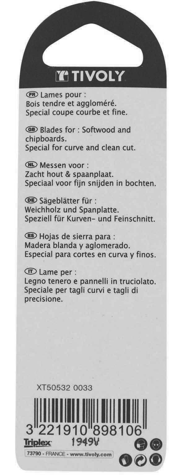 Lame de scie sauteuse -Pour bois tendre et aggloméré -Attache U / L: 75 / H: 50 / Courbe TIVOLY - XT505320033
