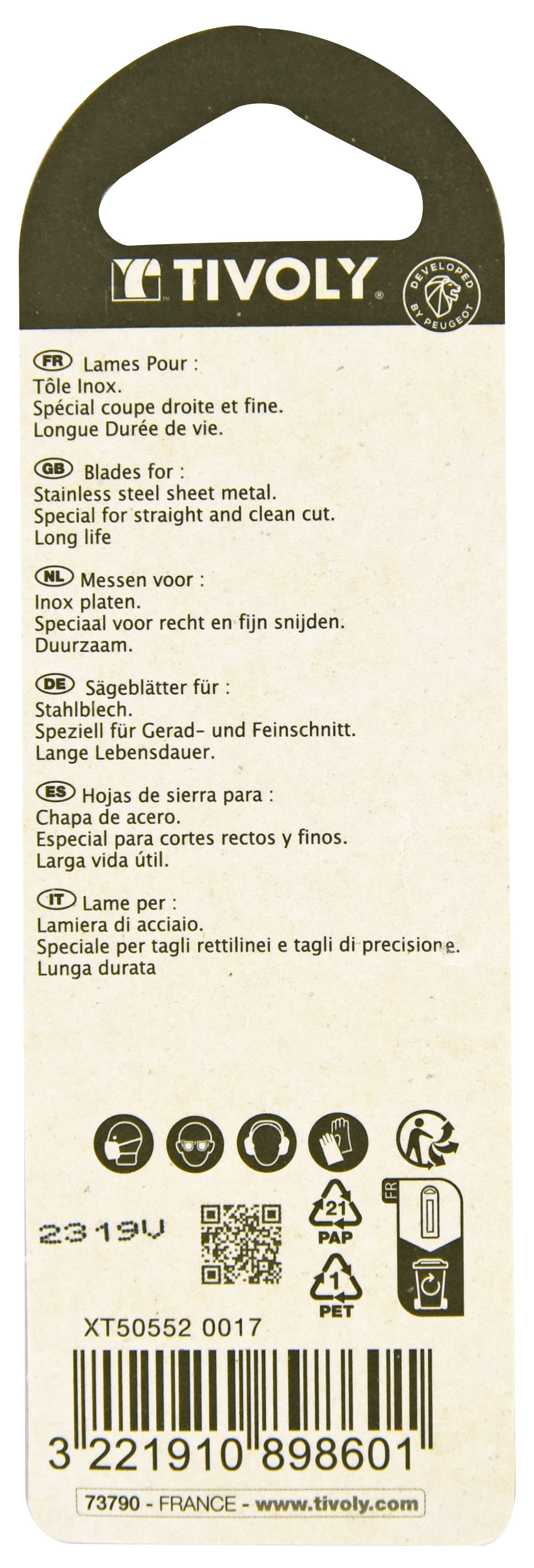 Lame de scie sauteuse -Pour inox -Attache T (Blister) / L: 75 / H: 50 / Droite TIVOLY - XT505520017