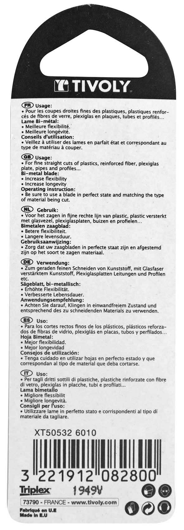 Découvrez Lame de scie sauteuse -Pour plastique, plexiglas et époxy -Attache U / L: 75 / H: 50 / Droite TIVOLY - XT505326010 disponible à l'achat