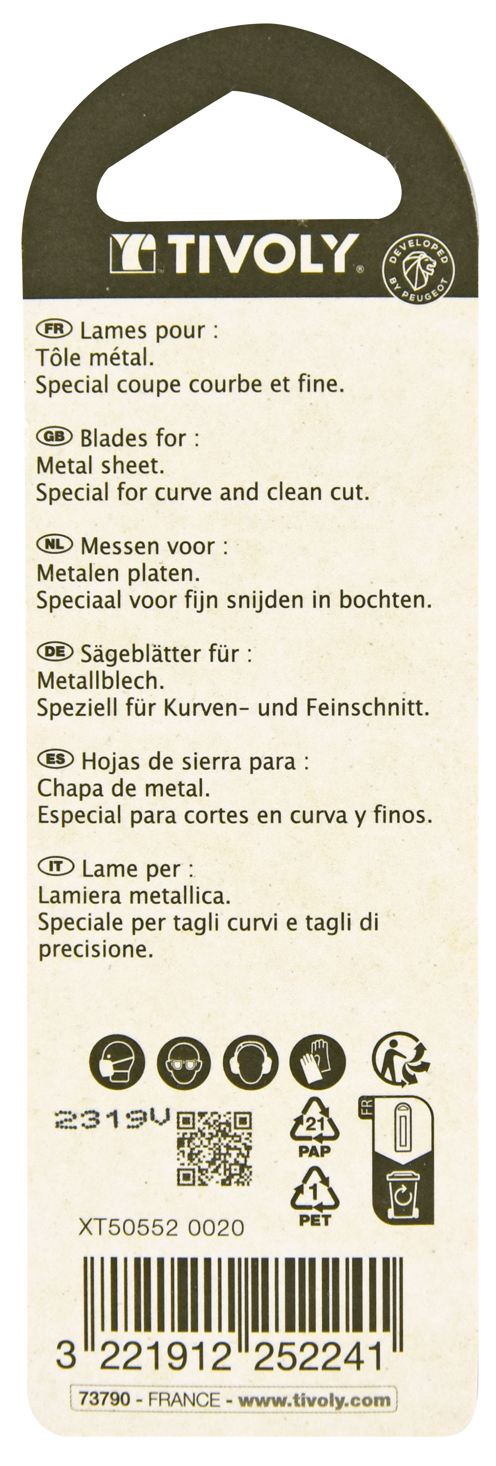Découvrez Lame de scie sauteuse -Pour tôle métal -Attache T / L: 75 / H: 50 / Courbe TIVOLY - XT505520020 disponible à l'achat