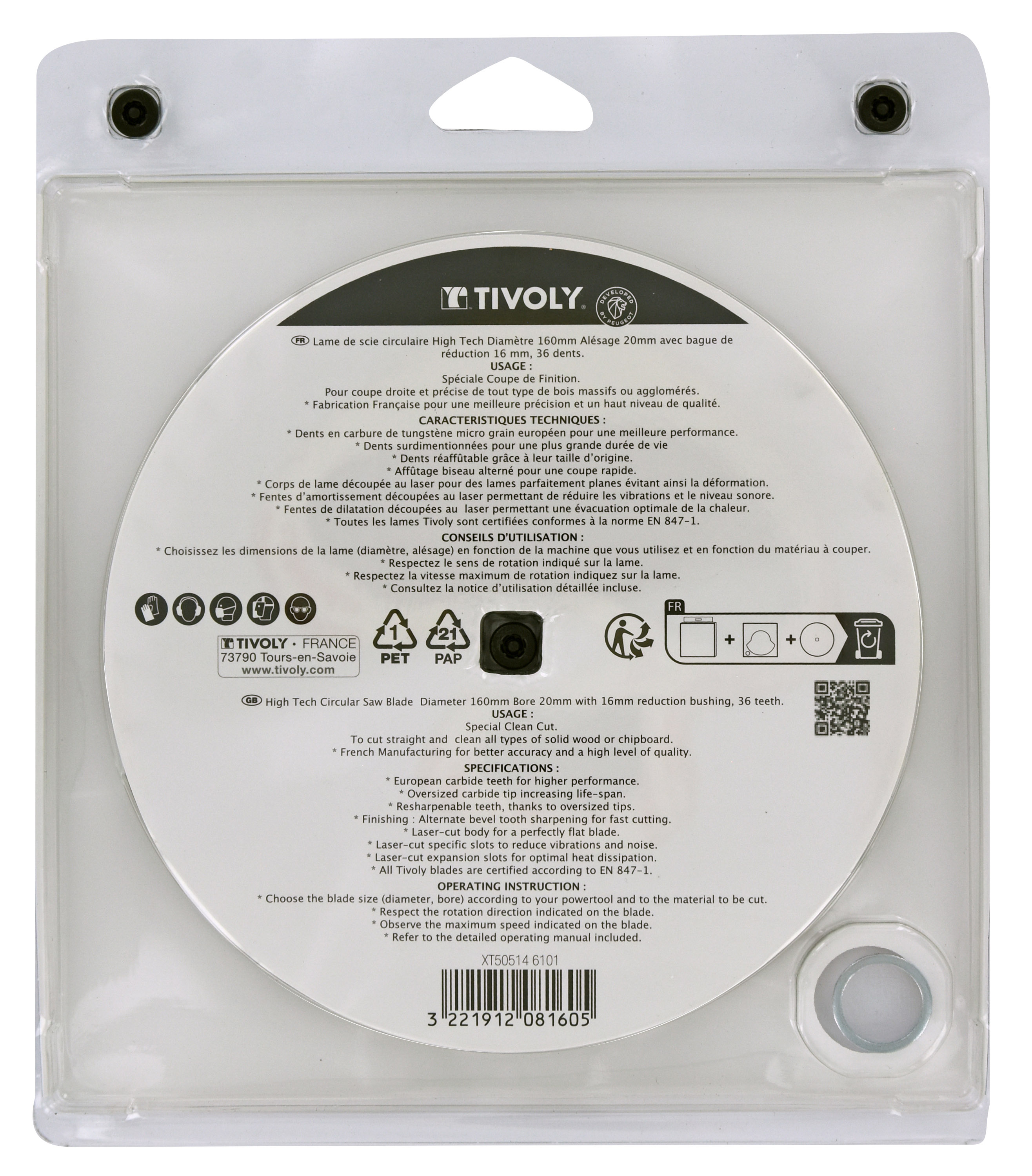 Découvrez Lames de scie circulaire -Finition -Pour bois -Pour scie portative Ø: 160 x Ø2: 20 x Z: 36 TIVOLY - XT505146101 disponible à l'achat