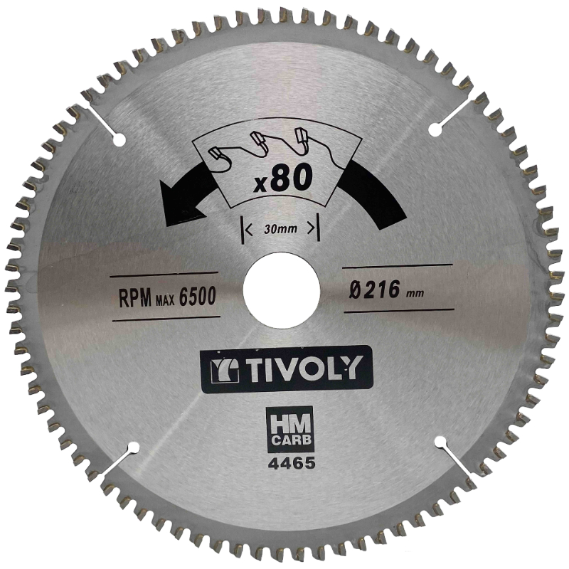 Lames de scie circulaire -Finition -Pour plastique, aluminium, bois durs -Pour scie portative Ø: 216 x Ø2: 30 x Z: 80 TIVOLY - XT50514004465