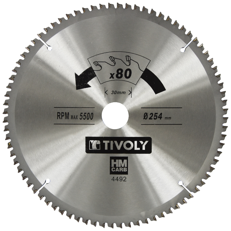 Lames de scie circulaire -Finition -Pour plastique, aluminium, Bois durs -Pour scie radiale et de table Ø: 254 x Ø2: 30 x Z: 80 TIVOLY - XT50514004492