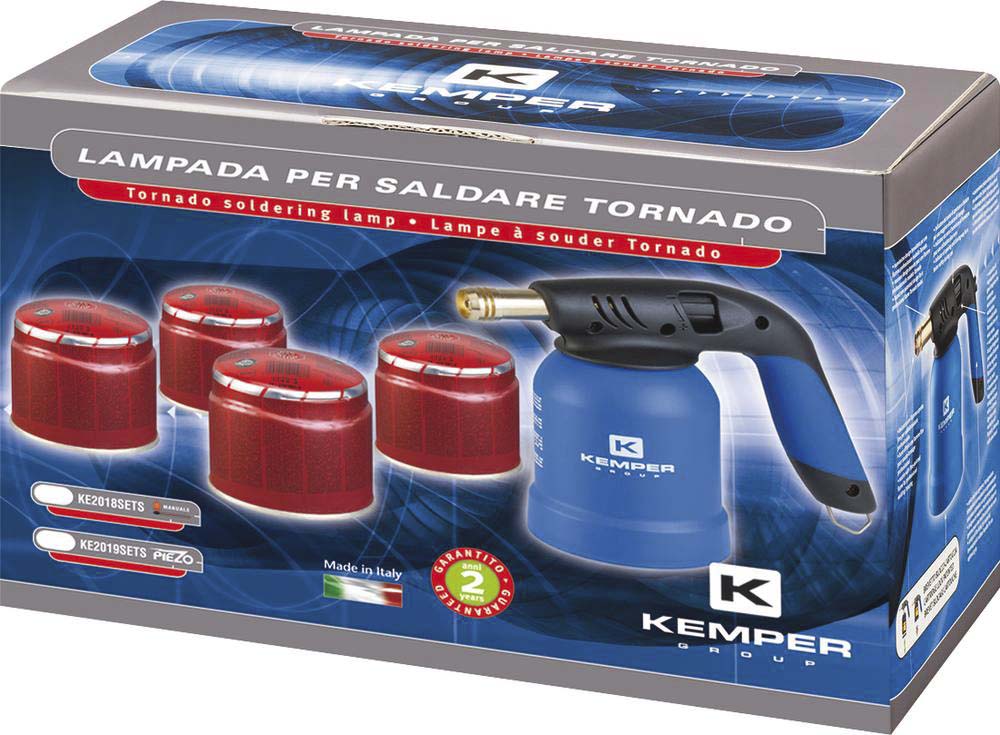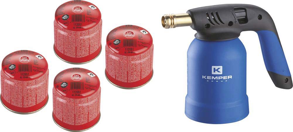 Découvrez Lampe à souder avec allumage piezo avec 4 cartouches de gaz à percer 190g KEMPER - 05895 disponible à l'achat