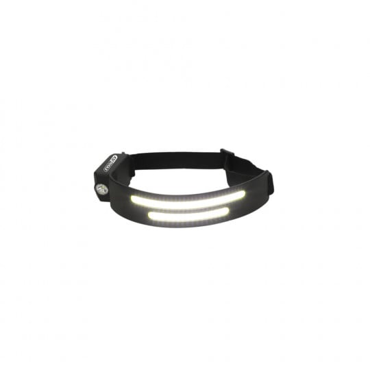 Cette lampe frontale est dotée d'une bande LED de 5 W et d'un spot latéral, avec une fonction d'allumage par détecteur de mouvements. Elle propose deux intensités d'éclairage par source lumineuse ainsi qu'un mode SOS clignotant pour les urgences. Grâce à sa sangle de tête réglable, elle s'ajuste facilement à divers diamètres, allant jusqu'à 63 cm. La recharge est simple via une prise USB type C, avec un câble inclus.