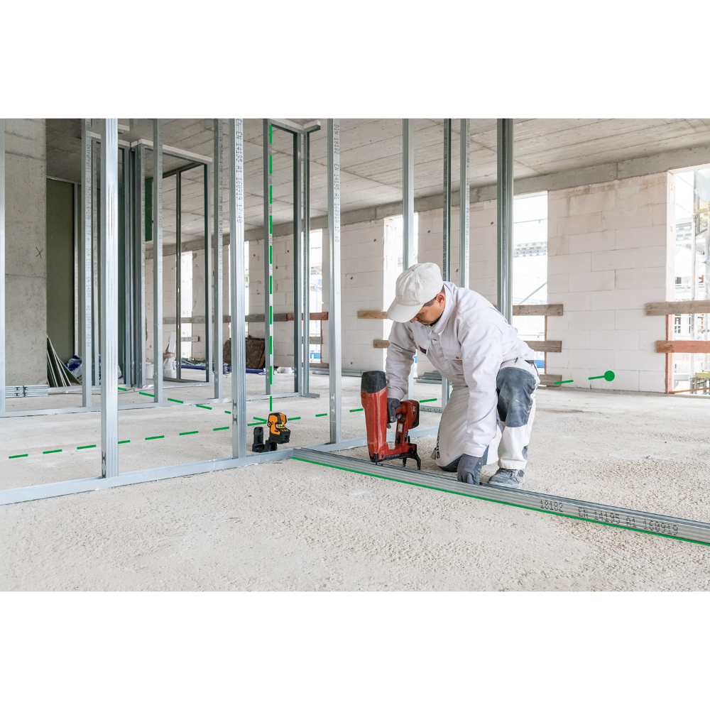Ce laser à points peut pivoter à 360° autour de son axe vertical et dispose d'une fonction pulsatante pour une utilisation avec une cellule (en option). Avec une plage d'auto-nivellement de ± 3° et une précision de ± 3 mm sur 10 m, il répond aux exigences les plus strictes. Sa diode verte assure une visibilité optimale, et il offre une portée de 50 m sans cellule et 80 m avec cellule.