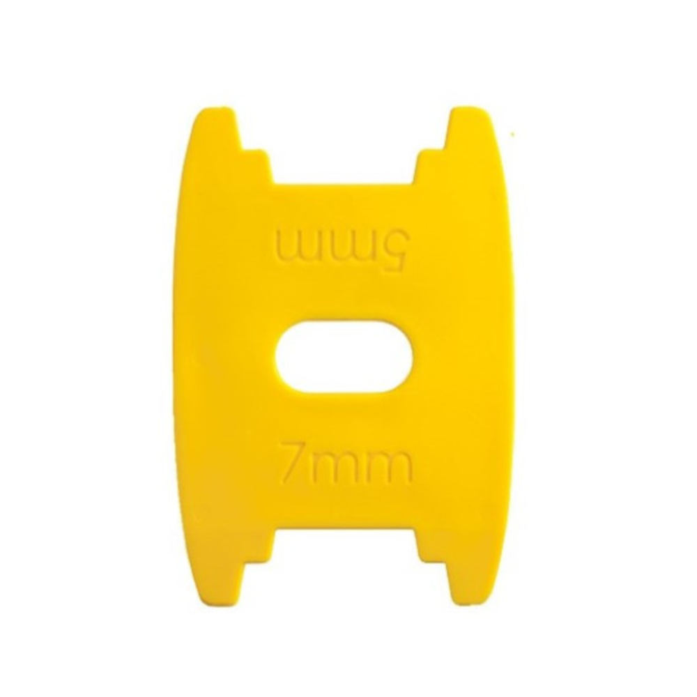 2 épaisseurs par cale : 5 mm ou 7 mm en fonction de l'intervalle souhaité. Possibilité de régler à 10, 12 ou 14 mm en superposant 2 cales l'une sur l'autre.