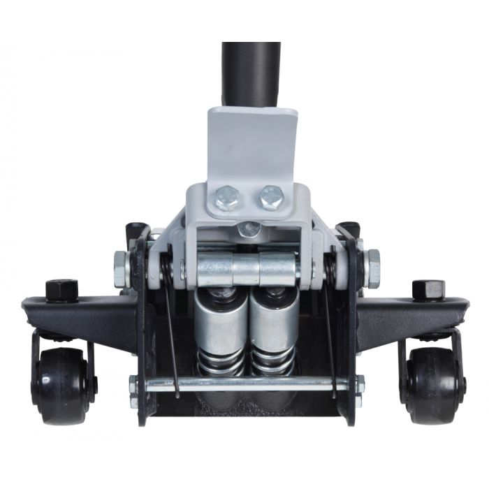 Le cric est doté d'une coupelle en inox, facilitant le démontage de visseries et d'écrous. Sa pompe hydraulique à double piston assure une levée rapide, tandis que la pédale d'approche permet un positionnement facile. Grâce à sa descente freinée, vous pouvez contrôler précisément la retombée de la charge. Le tampon en caoutchouc de 110 mm de diamètre protège les surfaces sensibles, et les quatre roues en polyuréthane, dont deux directionnelles, garantissent une maniabilité optimale.
